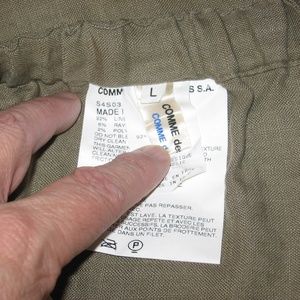 COMME de GARCONS Brown Linen Elastic Waist Women's Skirt. Size: L. Fabric: 92% Linen, 6% Rayon, 2% Poly. Elastic Waist. Inside Drawstring. Accent Floral Needlepoint At Base Of Skirt. Excellent Pre-Owned Condition.