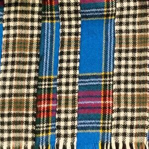 COMME des GARCONS SHIRT BOYS Blue Red Plaid Mixed Patterns Wool Fringe Scarf