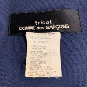 COMME des GARCONS TRICOT cardigan in a navy cotton knit featuring deep V-neck, long sleeves, and button closure. Made in Japan.