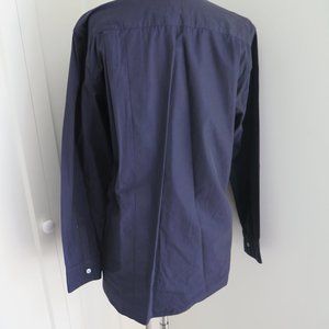 pre owned in excellent condition, comme des garcons woman's blue cotton shirt. collared neck, long set in sleeves, button front. made in france. size medium. regular fit.
