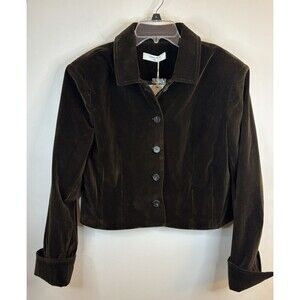 COMMENSE Velvet Lapel Short Blazer Women XL Chocolate Brown Crop Button Jacket