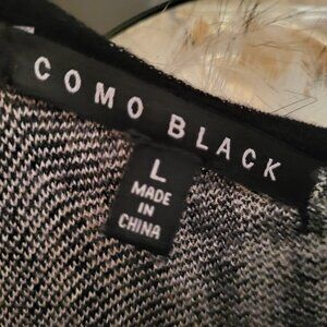 COMO BLACK - Black/White Long Sleeveless Cardigan w/Faux Leather Trim, Size L. New/excellent condition.