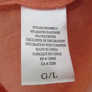 Pre-Owned Condition! 65% Rayon/35% Polyester. Beautiful Coral Color Embroidered V-Neck Pullover Blouse, Very Fresh!