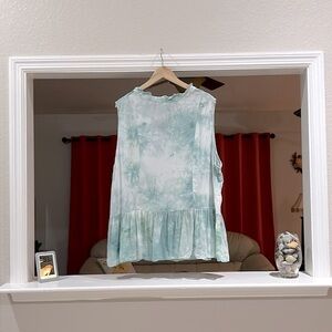 COMO BLU Women’s Plus Size 4X Sleeveless Tie-Dye Sea Mist Pullover Ruffle Hem Blouse Top. Tie at neck.