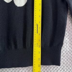 COMO BOCA Sweater Womens S Black Flower Cashmere Rib Crew Neck Long Sleeve