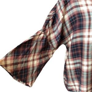COMO Blu Tunic Size Large Red Plaid Blouse 3/4” Bell Sleeves Back Keyhole New