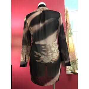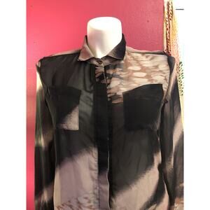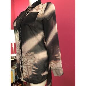COMO NO? NWOT Pink Black Sheer Button Up Long Sleeve Droptail Shirt Small