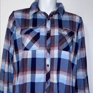 COMO VINTAGE Blue and Purple Plaid Button Up Shirt-S