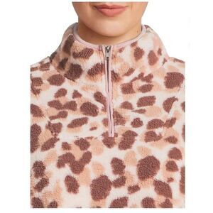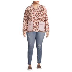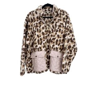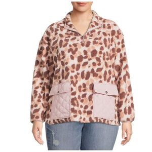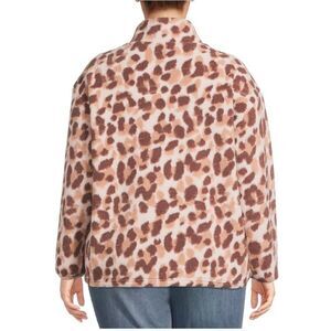 COMO VINTAGE Leopard Print Faux Sherpa 1/4-Zip Pullover Size 2X NWOT