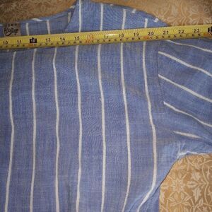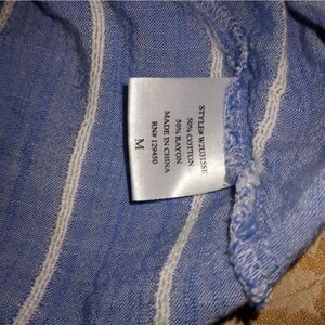 COMO Vintage Striped Blue White Dropped Shortsleeves Cotton Rayon Women's Top.