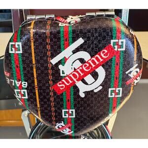 This NWOT FASHIONable COMPACT MIRROR: Heart-Shaped Black, Red, Green Collab Monogram Design is in EXCELLENT CONDITION, no snags; no holes; no fading areas; NEVER worn. In Original Unopened Packaging. But still previously lovingly cared for; so it’s a preloved (used) item, some normal and minimal wear is expected. Depending on device used, color may vary. Review pics as they’re part of the description. Sold as is, no refunds. All auction bids/wins are final, no cancellations.