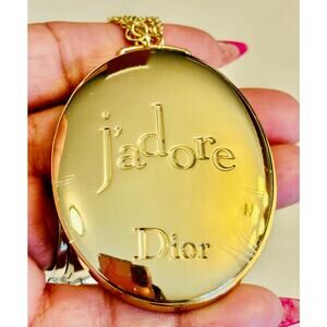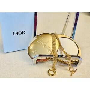 This NWOT COMPACT MIRROR: j’adore DIOR Golden Tone Double Mirror w/Matching 3 Link Chain Wristlet w/Original Box, Plastic Still On Mirrors (some damage to box) is in EXCELLENT CONDITION, no scratches that is the plastic; no holes; no fading areas; NEVER worn. In Original Unopened Packaging. But still previously lovingly cared for; so it’s a preloved (used) item, some normal and minimal wear is expected. Depending on device used, color may vary. Review pics as they’re part of the description. Sold as is, no refunds. All auction bids/wins are final, no cancellations.