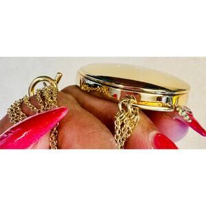 Perfect for any occasion, this NWOT COMPACT MIRROR: j’adore DIOR Golden Tone Double Mirror w/Matching 3 Link Chain Wristlet complements any look with effortless elegance, making it the ultimate symbol of style and sophistication. For the person who appreciates heritage and iconic design, this piece is a must-have.
