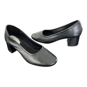 COM+SENS Womens 6.5 Lucianie Black Round Toe Soft Leather Block Heel Pump