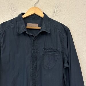 COMSTOCK & CO Long Sleeve Striped Button Up Shirt Military Style in Black Sz L M2591