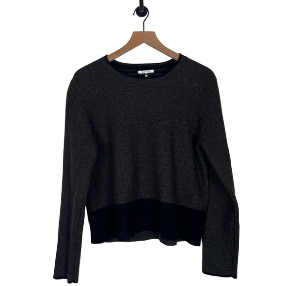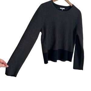COMUNE Womens Knit Crewneck Top Size Large Gray Black Cozy Comfy Two-Tone Minimalist Scandi