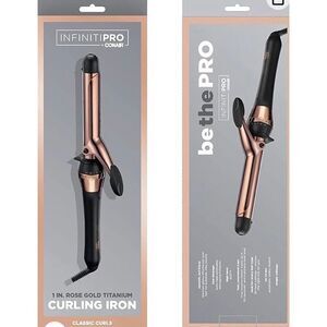 CONAIR Rose Gold Infinite Pro Titanium Curling Iron (professional and digital). This product is shine enhancing and can accommodate curls from 1.25" to .75". There are 30 heat settings and a fast, consistent heat. It heats up in 30 seconds up to 400°. It's 13" long with a cool tip and auto off. For that beachy look, leave the last inch of hair out of the curling iron. Beautiful styling tool and great gift. And it's NWT!