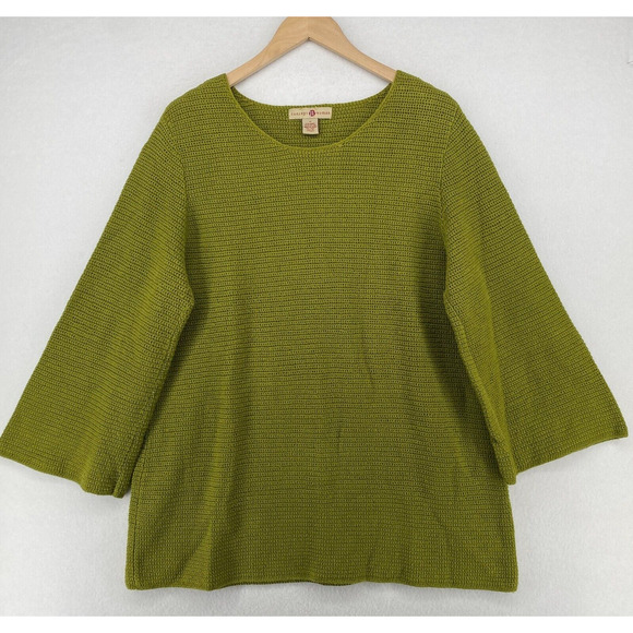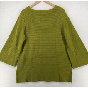 CONCEPT WOMAN Sweater 1X Ramie Cotton Crochet Jumper 3/4 Sleeve Pullover Green