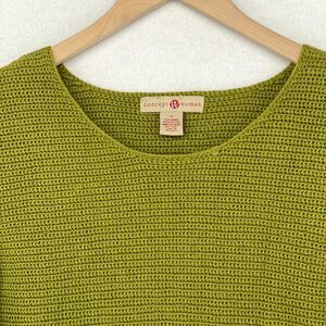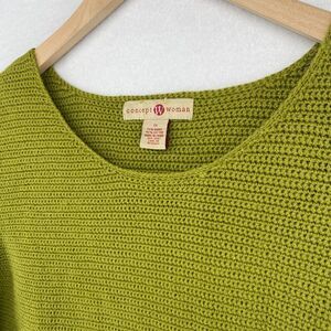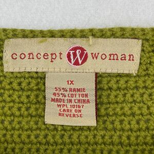 Vintage CONCEPT WOMAN Sweater 1X Ramie Cotton Crochet Jumper 3/4 Sleeve Pullover Green