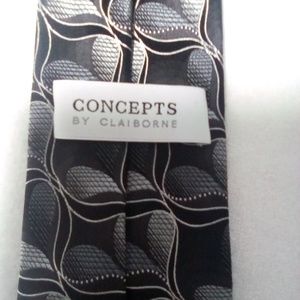 CONCEPTS BY CLAIBORNE Black and Silver Silk Tie.