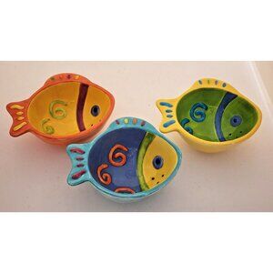 CONDIMENT/SERVING BOWLS-Colorful-Whimsical-Fish-Blue Yellow Green Orange-Set 3