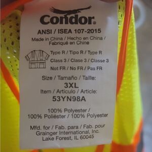 CONDOR reflective work cycling warehouse vest 3 xl type r class 3 53yn98a nwt