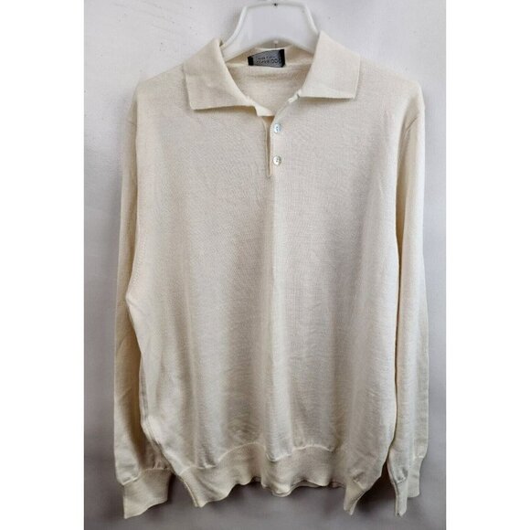 Confriddo Italy Mens Sweater Large Off White Wool Blend 1/4 Button Collared Pullover