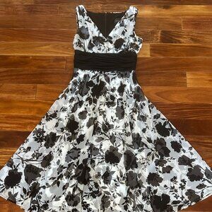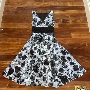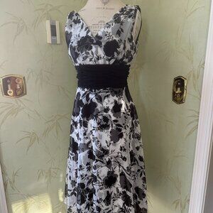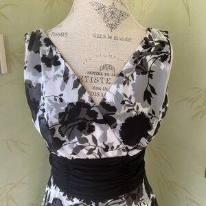 CONNECTED APPAREL FLOWY BLACK/WHITE FLORAL DRESS:PREOWNED EXCELLENT CONDITION