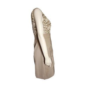 CONNECTED APPAREL Tan White Floral Lace Detail Sleeveless Dress Womens Size 6