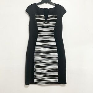 CONNECTED APPAREL Women Color Block Sheath Dress Slpit-Neck Cap Sleeve Size 12