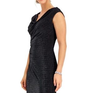 CONNECTED APPAREL Women’s Formal Dress Size 14 Black Silver Sparkle Draped Gown
