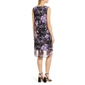 CONNECTED APPAREL Women's Grape Floral-Print Sleeveless Chiffon Overlay Dress