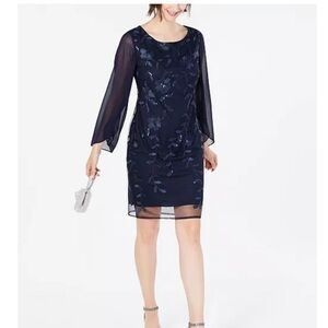 Framed by flowy sheer sleeves, this Connected sheath features tonal embroidery sprinkled with sequins to brighten a party look.