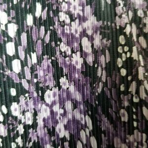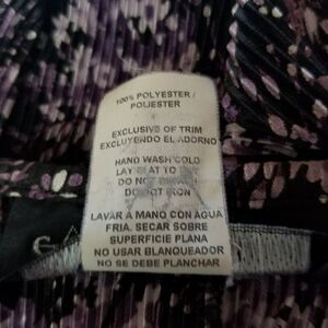 Connected Apparel top with front belted detail as in pic 4. Cute ribbed fabric. Has a little stretch to it. Approximate measurements are pit to pit 19". Length 27". Sleeves 5". Good used condition. Shades of purple with black.