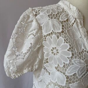 CONNIE ROBERSON BLOUSE TOP LACE FLORAL PUFF SLEEVE DAINTY FEMININE WHITE XS