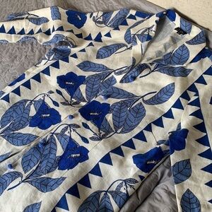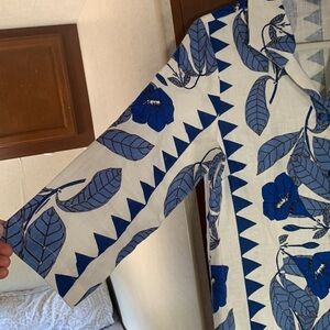 CONNIE ROBERSON LINEN FLORAL PRINT BUTTON blazer size S blue white