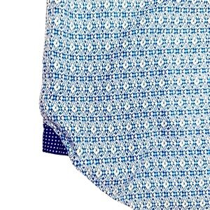 CON.STRUCT Slim Fit Short Sleeve Button Down Shirt Blue Geometric Print Sz Small