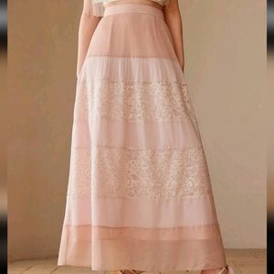 CONTRAST LACE PLEATED SKIRT,SPRING/SUMMER