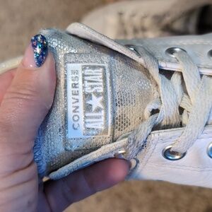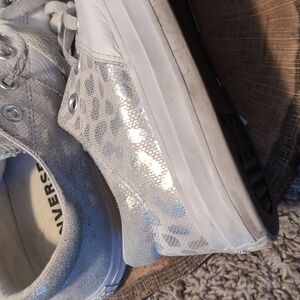 CONVERSE ALL STARS Silver Sparkle White Cheetah Print Leather Sneakers