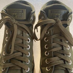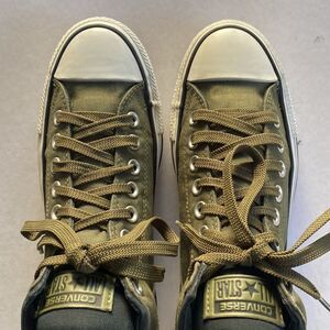 CONVERSE All Star Olive Green CORDURA Fabric Upper MidTops Size 7 Men’/9 Women in excellent used condition. No rips or tears just noticeable wear on the heels from normal use.