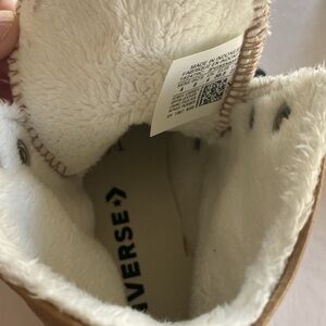 CONVERSE All Star Women’s Leather Sherpa Lined Hi Tops Size 6 in like new condition. Clean inside and out . No noticeable sign of wear.