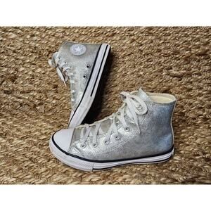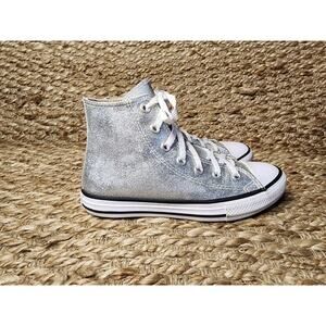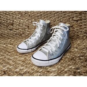 CONVERSE COATED SILVER GLITTER CHUCK TAYLOR ALL STAR KIDS Size 2 Hi Top