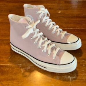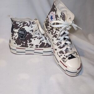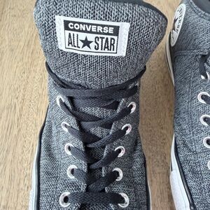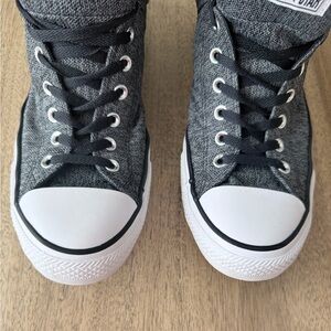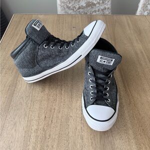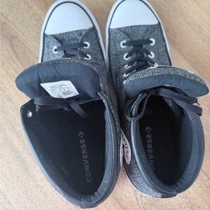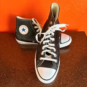 Classic Converse high-tops in black and white. Iconic design with durable canvas. Perfect for everyday wear. Excellent clean condition, smoke and pet free home. Nice padded tongue with black laces.