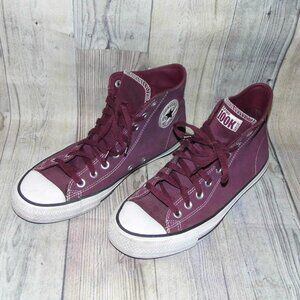 PRE-OWNED Converse Chuck Taylor All Star High X Zumiez 100K burgundy leather sneakers,