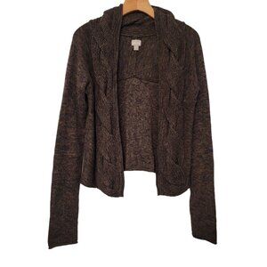CONVERSE ONE STAR Womens Cardigan Wrap Sweater Brown Black Sz M Twist Trim