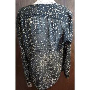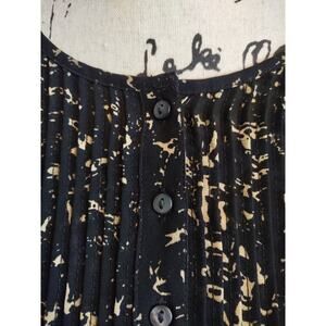 CONVERSE ONE STAR XL Blouse BLACK TAN Chiffon Pintuck Pleat Bib Button Top Sheer