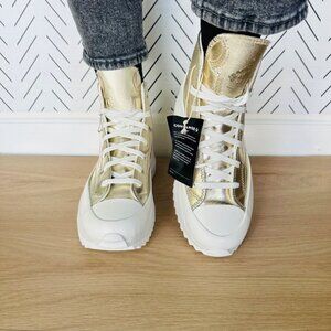 ❤️CONVERSE RUN STAR HIKE HI 7.5 Women GOLD PLATFORM Sneaker Boot Western A10333C