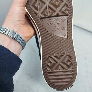 A collaboration between Sky High Farm Workwear and Converse features classic Chuck Taylor styling with Sky High Farm logos and text on the side.