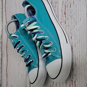 CONVERSE Teal Canvas Sneakers With Multi Laces Women's Size 8