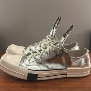 Converse x DRKSHDW size 12 silver low top with exaggerated tongue and toe box - work 3 times.